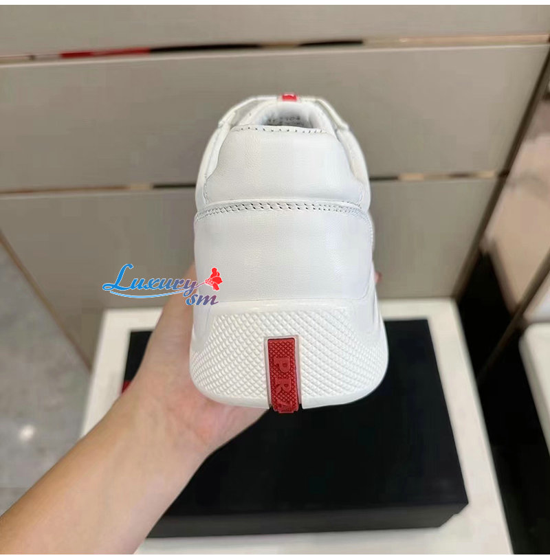 PRADA-07063 프라다 화이트 소가죽 트라이앵글 로고 스니커즈 남성용