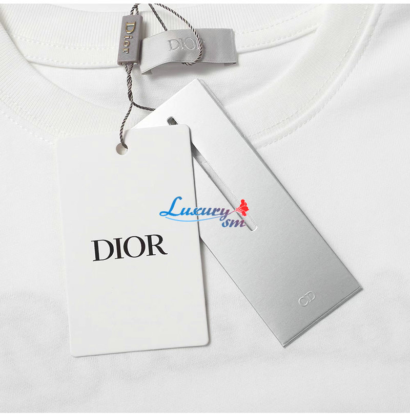 DIOR-07239 디올 화이트 아플리케 장식 티셔츠 남여공용