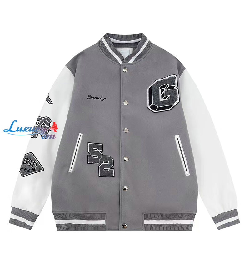 GIVENCHY-09046 지방시 그레이 아플리케 장식 베이스볼 재킷 남여공용