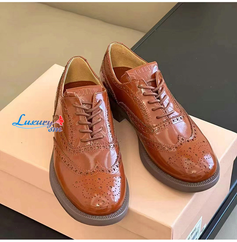 MIUMIU-5E038E 미우미우 타바코 처치스 x 미우미우 옥스포드 브로그 슈즈 여성용