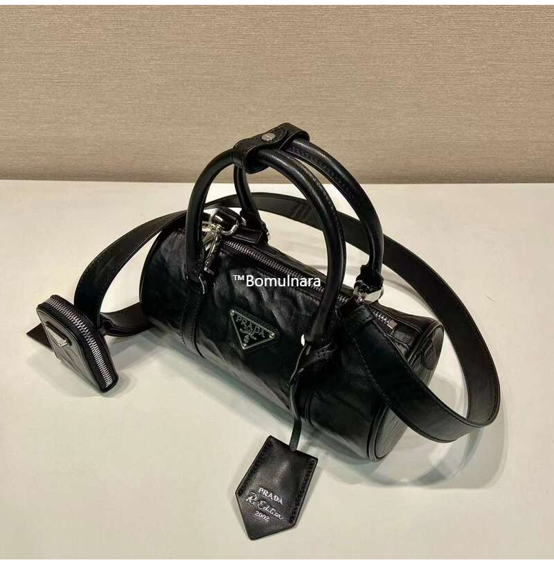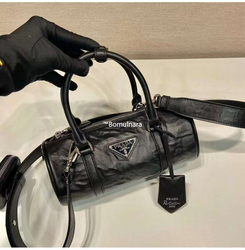 [스페셜오더]PRADA-1BA389 프라다 블랙 링클 나파 가죽 파우치 핸드백 22cm