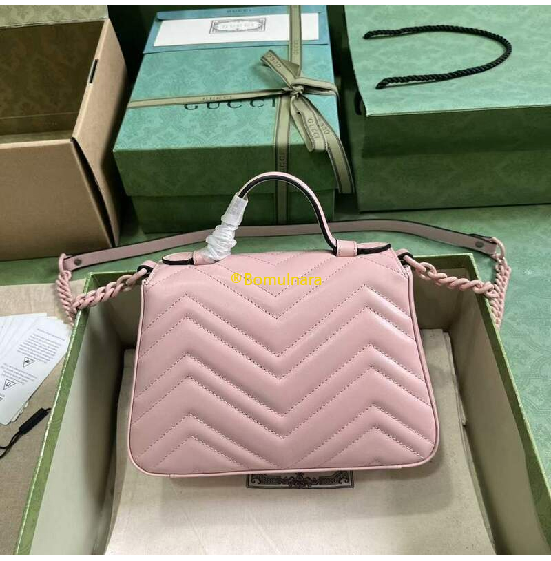 [스페셜오더]GUCCI-702563 5909 구찌 핑크 GG 마몽 마틀라세 쉐브론 미니 탑 핸들백 21cm