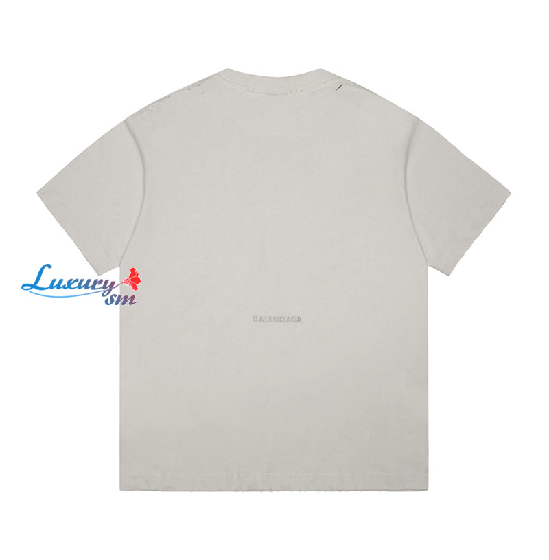 BALENCIAGA-06119 발렌시아가 라이트 그레이 프린트 장식 티셔츠 남여공용