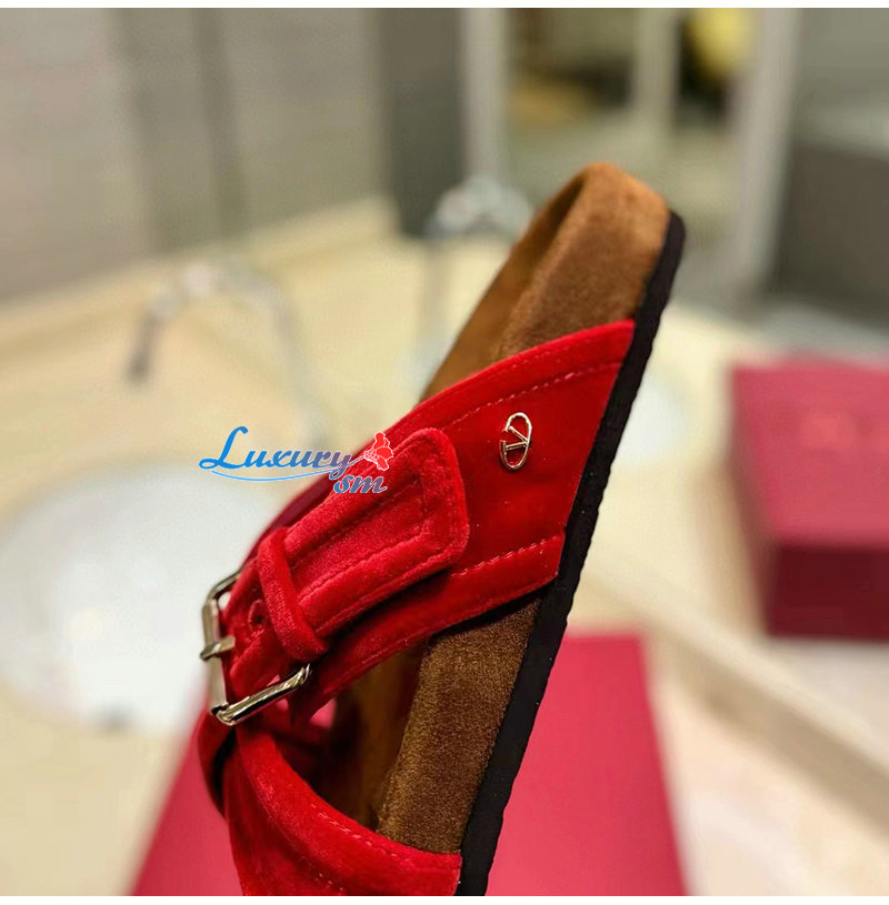 VALENTINO-4W0S0IZ 발렌티노 레드 슬라이드 퍼스프렌드 벨벳 샌들 남여공용