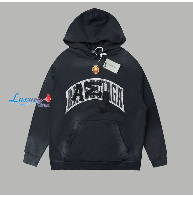 BALENCIAGA-08309 발렌시아가 블랙 아플리케 장식 더티워싱 후드 티셔츠 남여공용