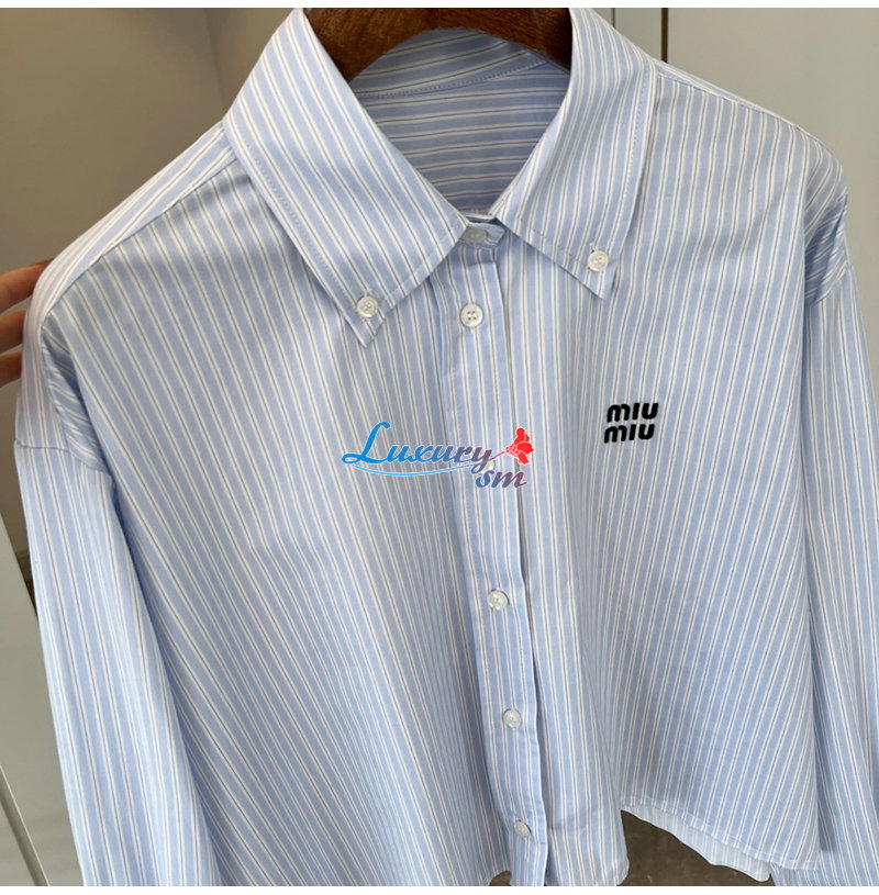 MIUMIU-02225 미우미우 라이트 블루 스트라이프 셔츠 여성용