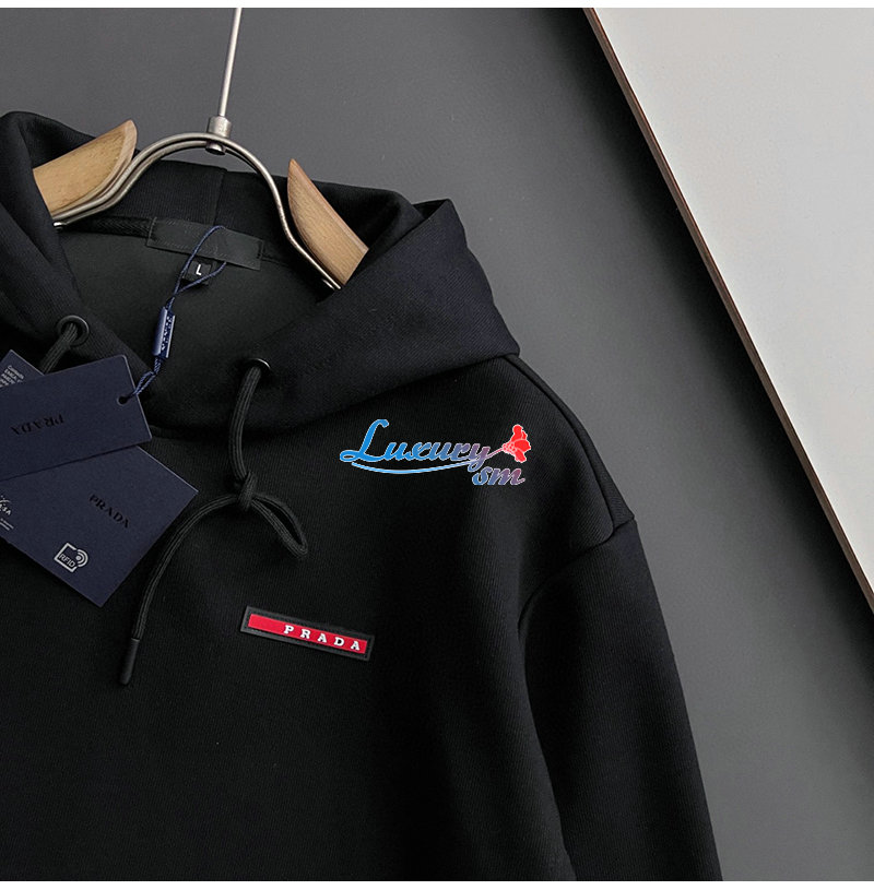 PRADA-02227 프라다 블랙 코튼 후드 티셔츠