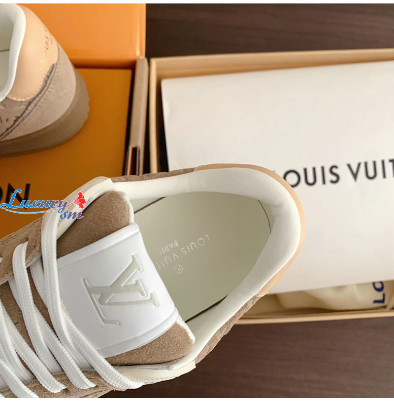 LOUIS VUITTON-1AGXPP 루이비통 베이지 모노그램 스웨이드 LV 스타디움 스니커즈 여성용