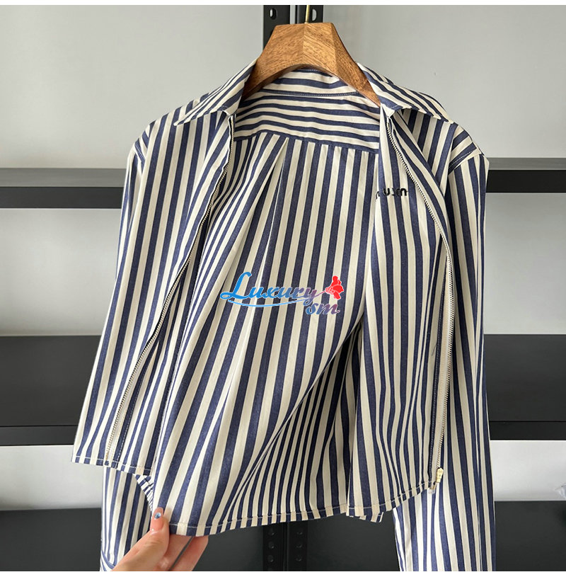 MIUMIU-MK1905 미우미우 블루 스트라이프 포플린 셔츠 여성용