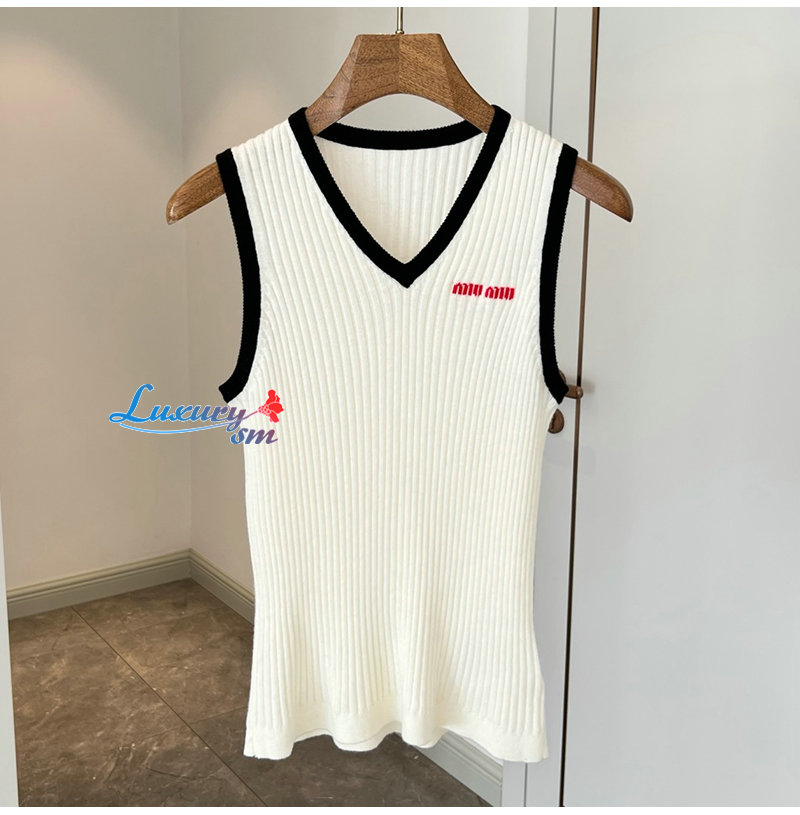 MIUMIU-03241 미우미우 화이트 니트 코튼 베스트 여성용