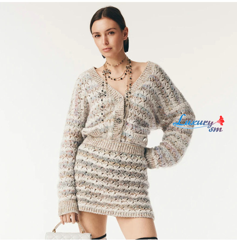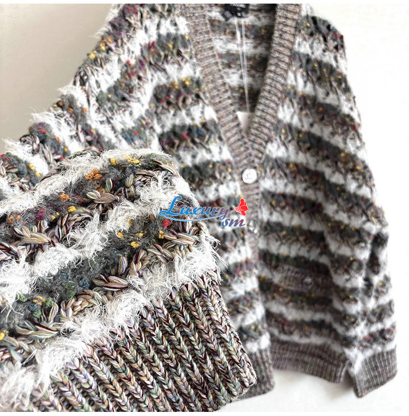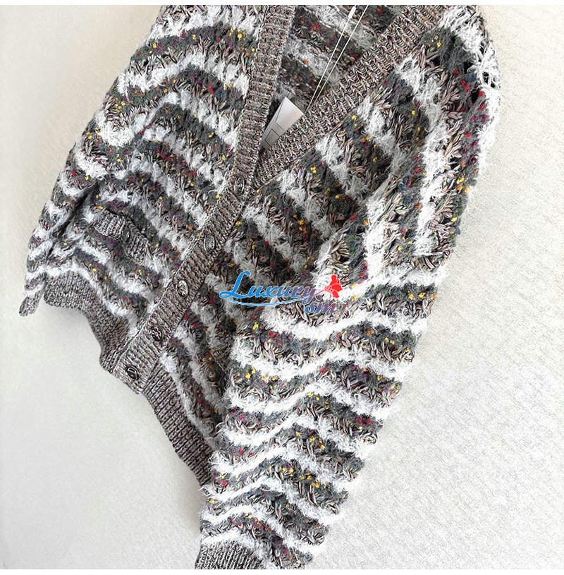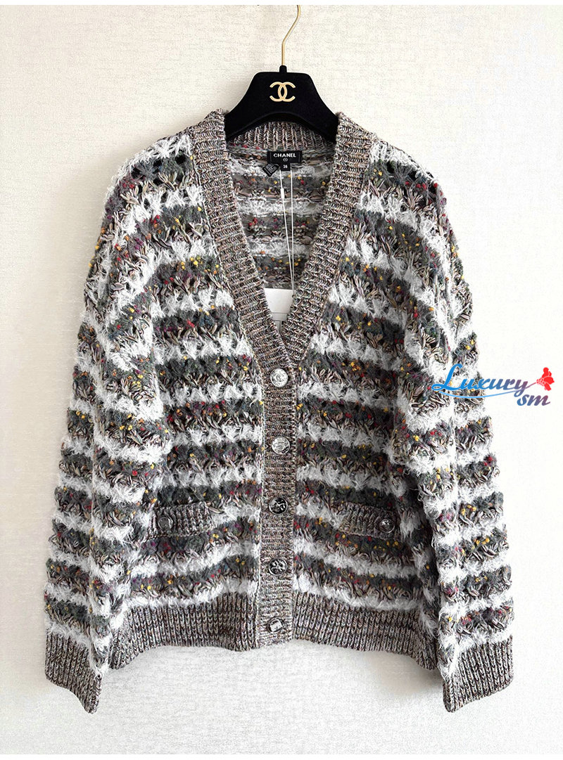 CHANEL-P80241 샤넬 그레이 스트라이프 가디건
