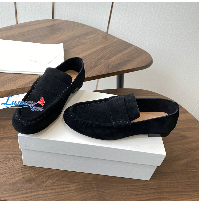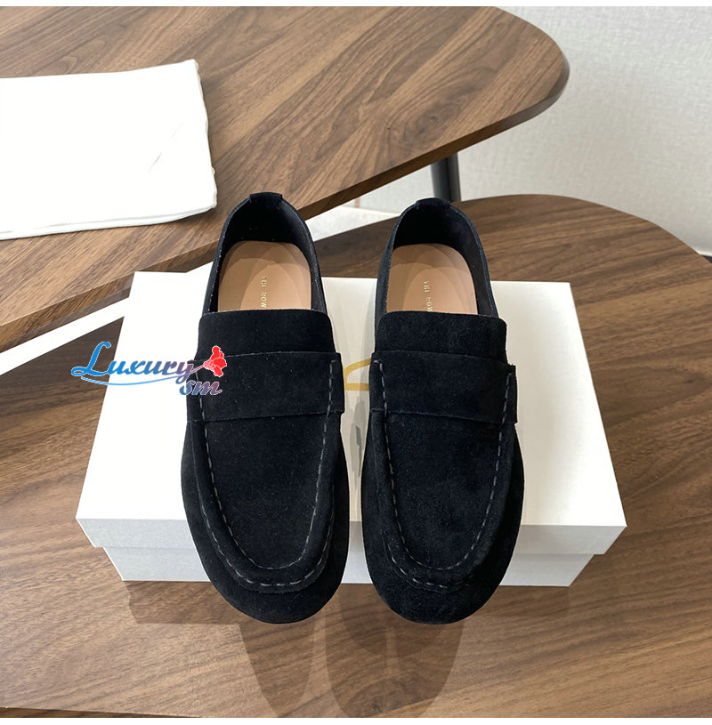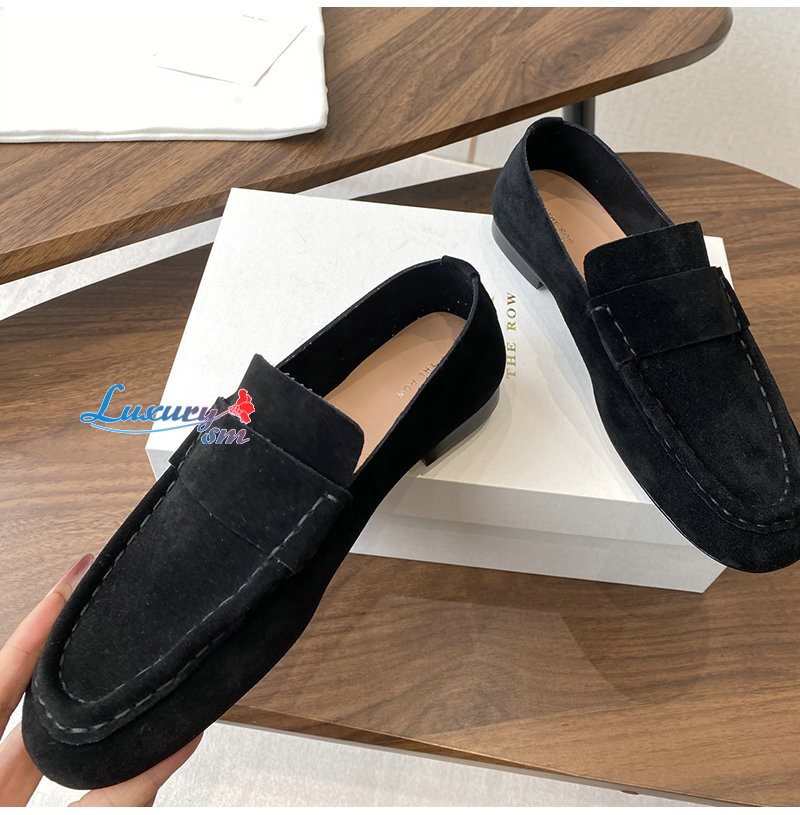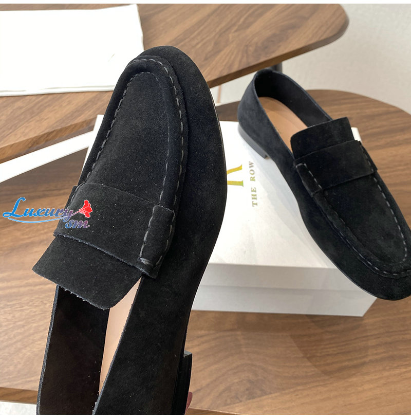 THE ROW-F1626L3 더 로우 블랙 Soft 스웨이드 모카신 여성용