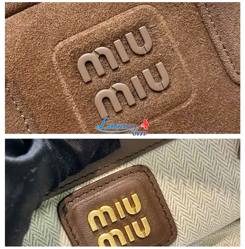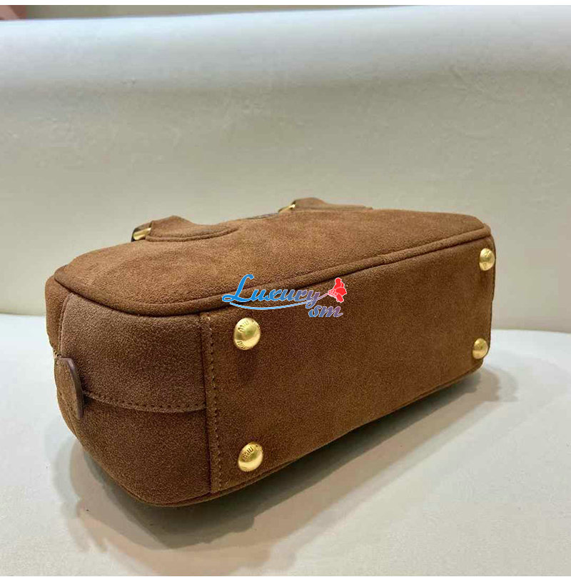 [스페셜오더]MIUMIU-5BB142 미우미우 브라운 아르카디 패딩 스웨이드 탑 핸들 백