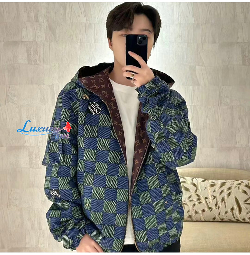 LOUIS VUITTON-08315 루이비통 네이비 다미에&모노그램 양면 바람막이 후드 재킷 남여공용