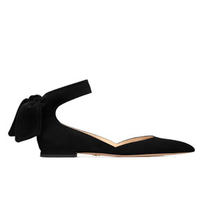 DIOR-KCB406 디올 블랙 스웨이드 양가죽 리본 발레 펌프스 여성용