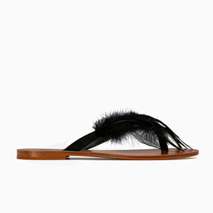 DIOR-KCF149 디올 블랙 깃털 송아지 가죽 통 샌들 여성용